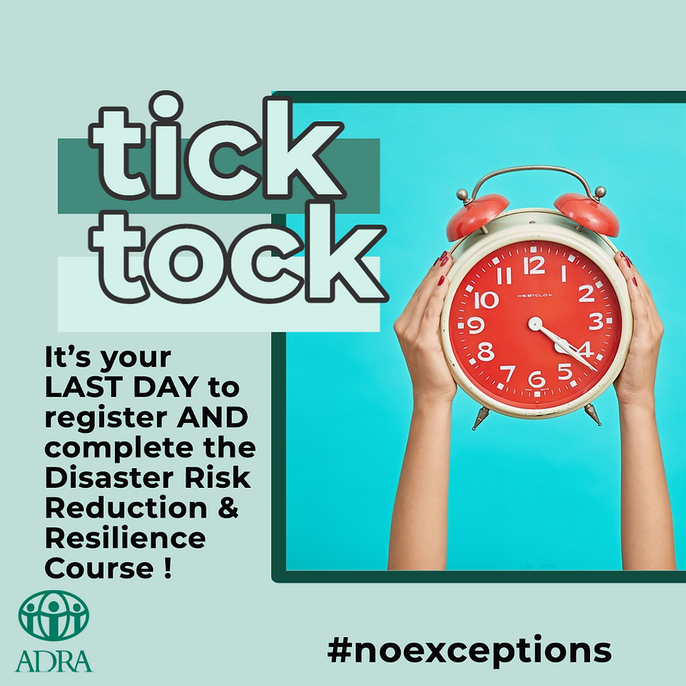 Hello, if you are interested in our free Disaster Risk Reduction and Resilience Course and if you are a teacher, church leader, or community leader, in The Bahamas, it is available to complete only until June 8th.